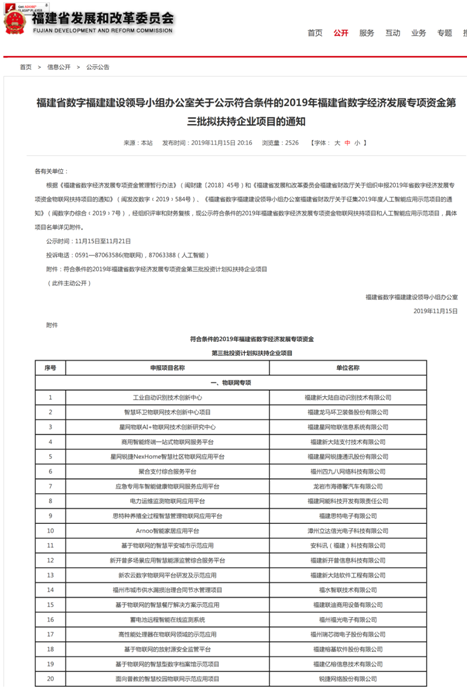 我司成功入圍福建省數(shù)字經(jīng)濟發(fā)展專項資金第三批擬扶持企業(yè)項目名錄
